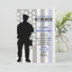 Convite de aposentadoria único para um policial. A Polícia de Bandeira Negra Azul é aposentada com uma silhueta de um policial e a bandeira americana no fundo.Use nossa modelo fácil para personalizar com os detalhes do seu partido.