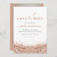 Este casamento salvou a data com sequências de ouro rosa e um duo de fonte de vidro. Use esta modelo para editar as fontes, a cor da fonte e a cor do plano de fundo para atender às suas necessidades de eventos. Edite *a maioria* do texto para ajustado das suas necessidades. Adicione uma foto atrás para um toque pessoal.