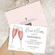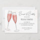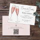 Este design apresenta uma noiva de cor d'água e noiva espumante, um copo de vinho chá de panela, registro online de presentes de código QR, endereço de site digitalizável por URL, um design mínimo minimalista rosa, um tipo de letra de escrita de caligrafia de na moda, um bar de torrada de vidro de flauta de champanhe, um estilo de texto tipográfico caprichoso, um brunch com convites para noiva