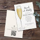 Esta design apresenta uma noiva de aquarela e noiva espumante, bebidas de champanhe de vinho de chá de panela, registro de presente de código QR online, uma design minimalista simples, letra de script de caligrafia de na moda de tendências, um bar de torrada de vidro de flauta de champanhe, com estilo de texto tipográfico caprichoso, brunch com convites de noiva, para sua noiva, com endereço URL do site de loja
