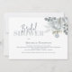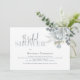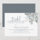 Este design apresenta azul empoeirado de folhagem floral com aquarela, com um registro de presente de código QR online, registro de loja de URLs do site, fonte moderna de script de caligrafia elegante, um rosa botânico elegante, fonte moderna e simples de tipografia minimalista, estilo de primavera de verão no outono, romântico simplista de elegância flexível, convites de chá de panela florais, um chá de panela com registro de presentes