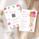Este belo design apresenta flores de cor brilhante, um vidro de champanhe dourado e o seu texto personalizado, juntamente com um código QR para o seu registro no verso. Use o formulário modelo para adicionar suas informações.