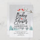 Modelos de Cartões de Convite de chá de fraldas - Terra Maravilha Elegante da Cena de Neve de Inverno com Pássaro Cardeal Vermelho e Rena. Todo estilo de texto, cores, tamanhos podem ser modificados para ajustado das suas necessidades!