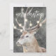Uma peça de arte serena falsa, apresentando uma rena na neve de inverno com luzes brilhantes em suas galhadas, e feliz Natal em uma letra de roteiro. Uma peça na moda moderna para sua parede, ou lareira.