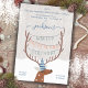 Reindeer moderno e simples com cordas das palavras "Winter Onederland Birthday" penduradas nas suas galhadas. Diversão e convite engraçado com personalidade! Perfeito para um aniversário no inverno ou perto do Natal.