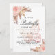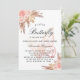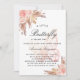 Para um chá de fraldas moderno estilo boho. Um fundo branco. Decorado com flores, rosas, grama-pampas e borboleta cor-de-rosa. Personalize e adicione um nome e detalhes da parte.