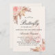Para um chá de fraldas moderno estilo boho. Um fundo bege suave. Decorado com flores, rosas, grama-pampas e borboleta cor-de-rosa. Personalize e adicione um nome e detalhes da parte.
