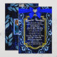 Apresento meu convite de aniversário moderno abstrato azul boêmio elegante, um design impressionante que apresenta um laço azul, gema, renda e folhas azuis. Este convite elegante pode ser personalizado com suas próprias informações e foto, tornando-o a escolha perfeita para celebrar 5º, 10º, 15º, 20º, 30º e 50º aniversários. Ideal para pais, avós, filhos, filhas e casais, este cartão adiciona um toque de sofisticação a qualquer celebração de aniversário. Compartilhe seu momento especial com os entes queridos usando este convite lindo e personalizável.