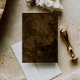 Convite de Noivado em Renda Vintage Marrom Mocha Dinheiro Antigo – Convite de Noivado Clássico Elegante com Design Floral nas Costas – Modelo Editável