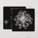 Fundo preto brilhante com coroa floral branca e inicial personalizada para o convite à cerimônia de renovação do voto de casamento.