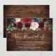 Convite de Renovação de Voto de Casamento em Madeira Rústica de Celeiro em Vinho Tinto Borgonha