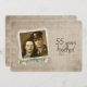 Convite de cerimônia de renovação de votos para aniversário de 55 anos de casamento. Foto antiga com pérolas e buquê de margaridas em fundo de partitura.