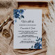 Este moderno convite à renovação da promessa floral azul é perfeito para uma cerimônia de renovação e celebração simples. Este elegante design floral pintado à mão apresenta flores azuis, azuis escuras e indigo graciosas com folhas verdes, representando majestosa beleza natural.
