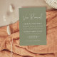 Uma tipografia moderna e uma cor verde-senadora para a sua papelaria de casamento: escolha esta simples e elegante suite de casamento. Totalmente personalizável: você pode alterar o plano de fundo e a cor do texto conforme desejar.