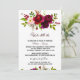 Este simples convite à renovação floral de burgundy é perfeito para uma moderna cerimônia de renovação de votos e celebração. A design ilustrada graciosa e radiante apresenta flores elegantes, cor de pêssego, vermelha escura, rosa, branca, aquarela, burgundy e pristine, bem agrupadas num buquê espantoso num leito de verde devastador.