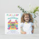 Casa de salto divertida em rosa e aqua com convite fotográfico