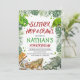 Prepare-se para uma aventura selvagem com este Convite de Aniversário do Réptil. Perfeito para pequenos exploradores que amam cobras, lagartos, e todas as coisas rastejando, este convite maravilhosamente desenhado apresenta répteis de aquarela vibrantes de cobras deslizantes para sapos saltadores e crocodilos poderosos, colocados contra a exuberante floresta verde. Convide seus hóspedes para uma aventura repleta de répteis! BRT138