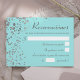 Ponha o tom para uma festa de aniversário de Quinceañera moderna e verdadeiramente memorável! Esta incrível Quinceañera faux Silver Confetti no cartão de resposta de festas de fundo azul aqua vai perfeitamente corresponder aos nossos convites da coleção "Ombre & Confetti". Cartão RSVP para uma comemoração de vidro. Um na moda, chic e doce design para um evento glamouroso!