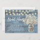 Respiração Rustic Baby Mason Jar Dusty Blue Barn Convites de chá de panela de madeira.