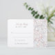 Este modelo de cartão de RSVP incorpora elegância clássica com seu desenho floral Lírio Dourado, definido em tons pastéis de pêssego, azul céu e marfim. Oferece aos convidados uma maneira graciosa de responder ao seu convite de casamento, com opções para aceitar com alegria ou celebrar de longe. O charme vintage do design torna-o um precursor delicioso da estética de uma celebração de casamento tradicional.