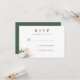 Um cartão bonito de resposta/rsvp de casamento, que inclui um pequeno arranjo de cor aquosa floral de natas, rosas e folhas brancas e verdes, com aspersão de cintilação falsa. O suporte está em verde-senso escuro sólido. Itens correspondentes neste design disponível.
