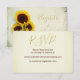 Cartão de Resposta de Casamento Rústico de Girassol. Um girassol amarelo brilhante é o fundo para a resposta do convite de casamento personalizado. O design tem um toque rústico. O verso tem Girassóis com os nomes da noiva e do noivo que podem ser removidos se você quiser um fundo simples. Todas as informações são facilmente alteradas para o seu cartão de Resposta de Casamento personalizado. Brilhante e convidativo .