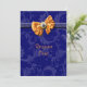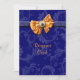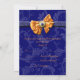 Este convite lindo e simples, com modelos personalizáveis, é ideal para seus convidados como um cartão de resposta. DESIGN - Uma elegante fita de cetim FAUX laranja tem uma pedra preciosa dourada e azul-marinho e é colocada contra uma fita azul rodeada por um padrão floral suave e "quase imperceptível". PERSONALIZE - Use o botão "personalizar" para alterar o tamanho, estilo e cor da fonte; para adicionar ou excluir modelos ou para carregar seus próprios gráficos e fotos. LINHA COORDENADA - Role para baixo para ver a gama completa de itens nesta linha exclusiva. PEDIDOS PERSONALIZADOS - Para assistência, alterações de cor ou designs personalizados, entre em contato comigo em clientrequestrw@gmail.com