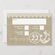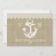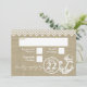 Cartão de resposta com estampa rústica em falso burlap e âncora rústica branca e estilo ziguezague ou xadrez para combinar com o convite. Desenho de âncora com corda e a aparência de burlap neste convite de casamento de praia único.