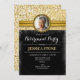 Convite para aposentadoria com foto - design negro elegante Dourado em ouro brilhante falso e preto. Perfeito para uma festa de aposentadoria feminina.