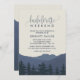 Este retiro para o convite de fim de semana da solteira das montanhas é perfeito para uma festa de solteira moderna. O design apresenta uma serena cordilheira azul-aquática com uma floresta de árvores verdes em primeiro plano. Por favor, observe que isto não está impresso em papel kraft real. É um gráfico de alta qualidade feito para parecer papel kraft.
