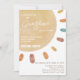 Retro A Little Ray of Sunshine Chá de fraldas Invitation Retro style ponto neutral em relação ao gênero, um pequeno raio de sol está no caminho do convite para chás de fraldas que apresentam um sol grande a aquarela com vários raios solares coloridos. Este convite temático ao sol ou sol é ideal para um chá de fraldas retrorreflector neutro do ponto de vista do gênero.