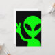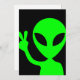 Imagem verde e alienígena preta. A alienígena está a piscar um sinal de paz.