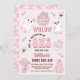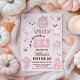 Retro Pink Brown Halloween Spooky Um primeiro aniversario Convite Rapariga no Dia das Bruxas O primeiro convite de aniversário para uma menina com alguns fantasmas ranzinza, abóbora, bola de disco, esmalte, estrelas e cogumelo. Este primeiro convite de aniversário do Halloween também apresenta algum texto retrô e uma onda como um padrão de tabuleiro de xadrez no verso. É ideal para uma festa de aniversário divertida de outubro para uma menina.