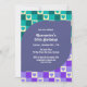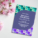 Convites Retro Checkup Heart Bauhaus Teal Blue Aniversário