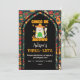 Um convite de festa de aniversário retro Fiest com um gatinho fofo celebrando o dia Cinco de Maio com maracas, e um sombrero com um texto dizendo Cinco de Meow três Festa. Uma arte popular colorida e fofa com tipografia fofa é uma combinação perfeita para celebrar o 3º aniversário ao estilo folk.