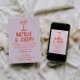Este convite para o casamento é perfeito para o seu casamento, se você está procurando um convite elegante único e fácil de editar. Um simples e elegante convite de modelo de casamento rosa e vermelho, simples e minimalista. Que apresenta fundo rosa claro. E a mão vermelha escreveu os nomes da noiva e do noivo. Com um vidro martini ilustrado e esquisito desenhado à mão. Toda a dentro de um quadro de arco desenhado com a mão verde. e informações editáveis com a tentativa do nó no verso. Barato e é também um e-convite eletrônico digital se você quiser enviá-lo por texto ou email. Todas as informações são personalizáveis clicando no botão personalizar. Então pegue-o e faça-o seu para que você faça você convidar noivos e excitados.
