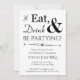 Vai ser uma festa de 4 de julho, então coloque o palco com este retro preto e branco Coma, Beba e Esteja Festejando! Convite para o Dia da Independência.