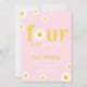 Retro Daisy Quatro Pastel Selvagem Rosa e Amarelo 4º Convite de Aniversário.
