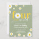 Retro Daisy Quatro Sábio Selvagem Verde 4º Convite de Aniversário.