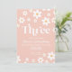 Convites Retro Daisy THREE Floral aniversário de 3 anos Con