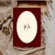 Convites Retro Deep Burgundy Ivory Oval Old Money Wedding