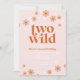 Dois Wild, Retro inspirou o segundo convite de aniversário com margaridas do estilo 70 e fontes e cores de vassoura.
