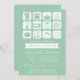 Comece seu chá de panela de cozinha moderno com nosso retrô estoque o convite para o chá de casamento da cozinha com uma reviravolta moderna. Nosso equipamento de cozinha de na moda e convite para entrega de gadgets apresenta um pote, liquidificador, escala de cozinha, conjunto de utensílios, pote de café, facas, conselho de corte, fogão e micro-ondas, em um fundo verde de hemlock com um sotaque moderno e moderno. Excelente para um chá de panela de primavera, verão, outono ou inverno. Solicitação de cor personalizada sempre bem-vinda.