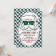 Retro Green and Pink Checkered Santa Claus Christmas Invitation.