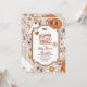 Prepare-se para dar as boas-vindas ao seu pequeno com uma vibração divertida e festiva usando o nosso Convite para Chá de fraldas de Pequeno Boo Halloween Retro Groovy. Este convite lúdico apresenta uma combinação deliciosa de elementos retrorreflectores e groovy, com uma reviravolta de Halloween. Adorado com fantasmas bonitos, abóboras vibrantes e tipografia engraçada, ele define o tom perfeito para um chá de fraldas temático do Dia das Bruxas. O design incorpora cores quentes e autóctones e gráficos nostálgicos inspirados na década de 70, criando uma atmosfera encantadora e viva para sua celebração. Ideal para esperar pais que amam uma mistura de estilo vintage e diversão no Halloween, este convite promete um evento espetacularmente doce e memorável para todos os seus convidados.