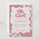 Convites Retro Groovy Pink Checkered Oh Girl Baby Shower