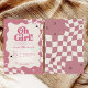 baby shower invitation, oh girl, retro baby shower, groovy baby shower, pink checkered, 70s style, wavy border, trendy baby shower, girl baby shower, pink and cream, checkered pattern, modern baby shower, star baby shower, baby girl, bohemian retro, pink aesthetic, groovy girl, whimsical invitation, checkered stationery, retro font