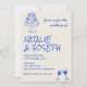 Convites Retro Hand Drawn Blue Cake Bows Unique Wedding