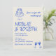 This wedding invitation is perfect for your wedding, if you are looking for an elegant unique and easy editable invitation .An elegant unique simple cream and blue wedding template invitation. Which features plain cream background. And blue hand written bride's and groom's first names. With hand drawn quirky illustrated wedding bows cake and wine glasses. And editable info with trying the knot saying on the back. Affordable and it is also digital electronic e-invitation if you want to send it by text or email. All the info are customizable by clicking on the personalize button. So Grab it and make it yours so you make you invites engaged and excited .
