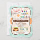 Cupcake e chá de panela de xícara de chá, bonitos e coloridos, em branco retrorado e robins, azul-azul-marinho, padrão robusto-roxo. Cupcakes, cor-de-rosa, amarela, azul, verde, roxo, castanho, branco e laranja, com xícara de chá rosa, verde e marrom, teacup, xícara de café e flor rosa e amarela. Excelente para chás de panela temáticos da festa de chá! Convite em forma de colchete de safra.